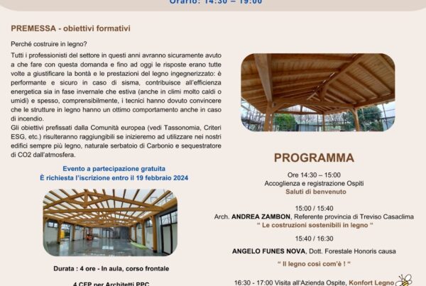 Domani, venerdì 23 febbraio 2024, saremo chiusi per l’evento “Un edilizia sostenibile del futuro: IL LEGNO PROTAGONISTA”